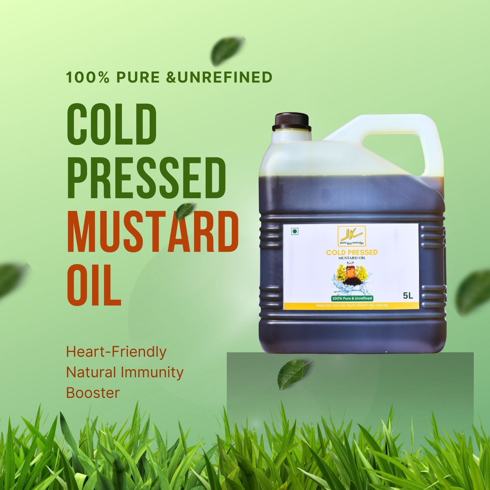 Infuse bold flavor and age-old wellness into your kitchen with JK Cold Pressed Mustard Oil – 5 Litre. Extracted using the traditional wooden cold-press (kolhu/ghani) method, this oil is made from premium mustard seeds to retain their natural pungency, nutrients, and therapeutic properties — without any heat, chemicals, or additives.