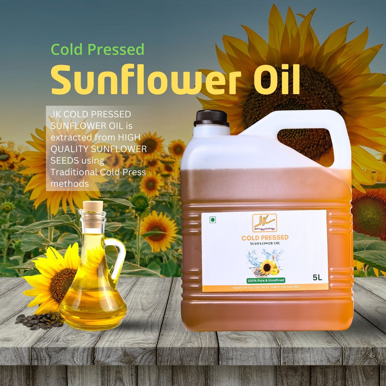 Fuel your kitchen with purity and wellness through JK Cold Pressed Sunflower Oil – 5 Litre. Extracted from high-quality sunflower seeds using the traditional wooden cold-press (ghani) method, this oil retains its natural nutrients, light aroma, and golden clarity—without any chemicals, heat, or additives.